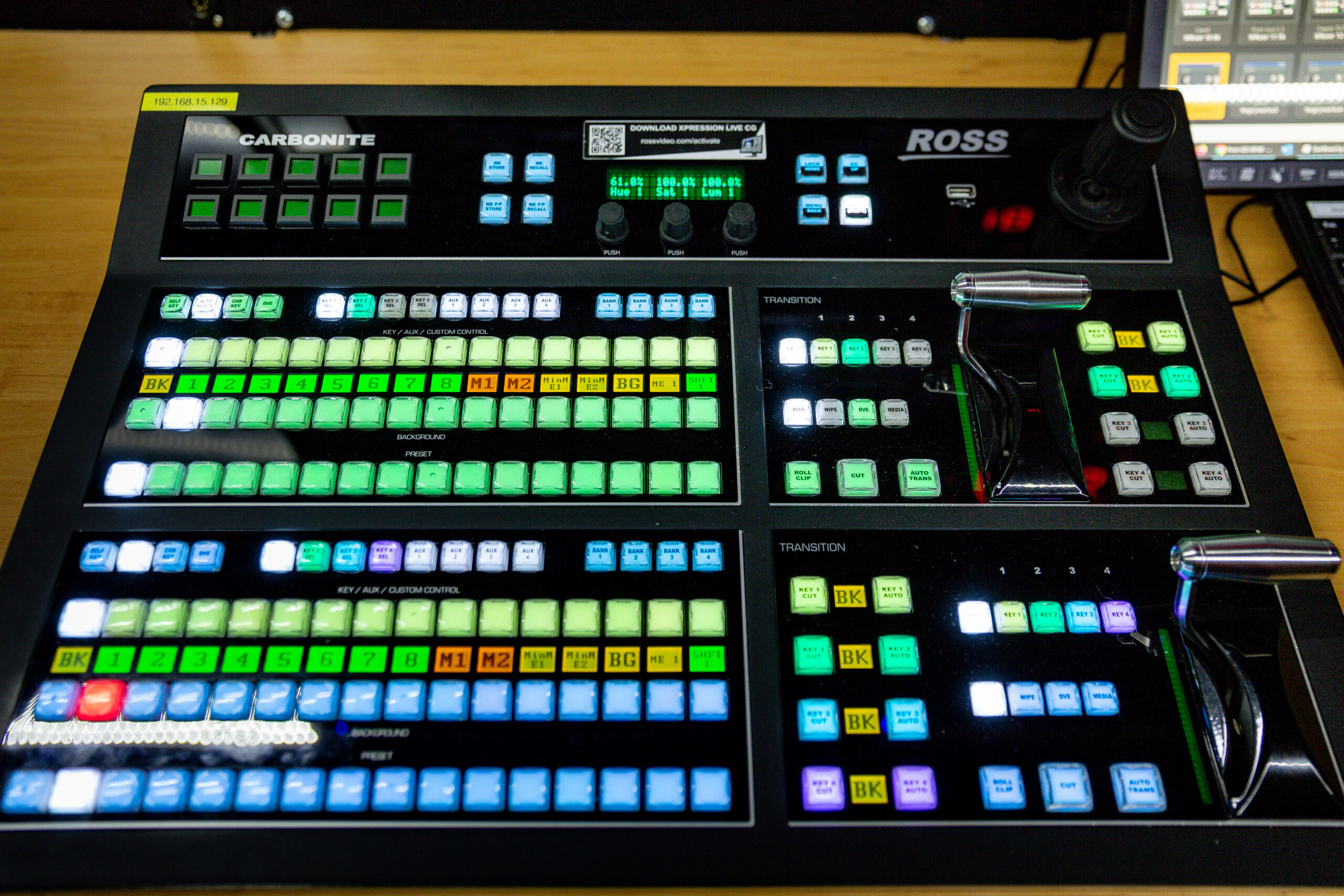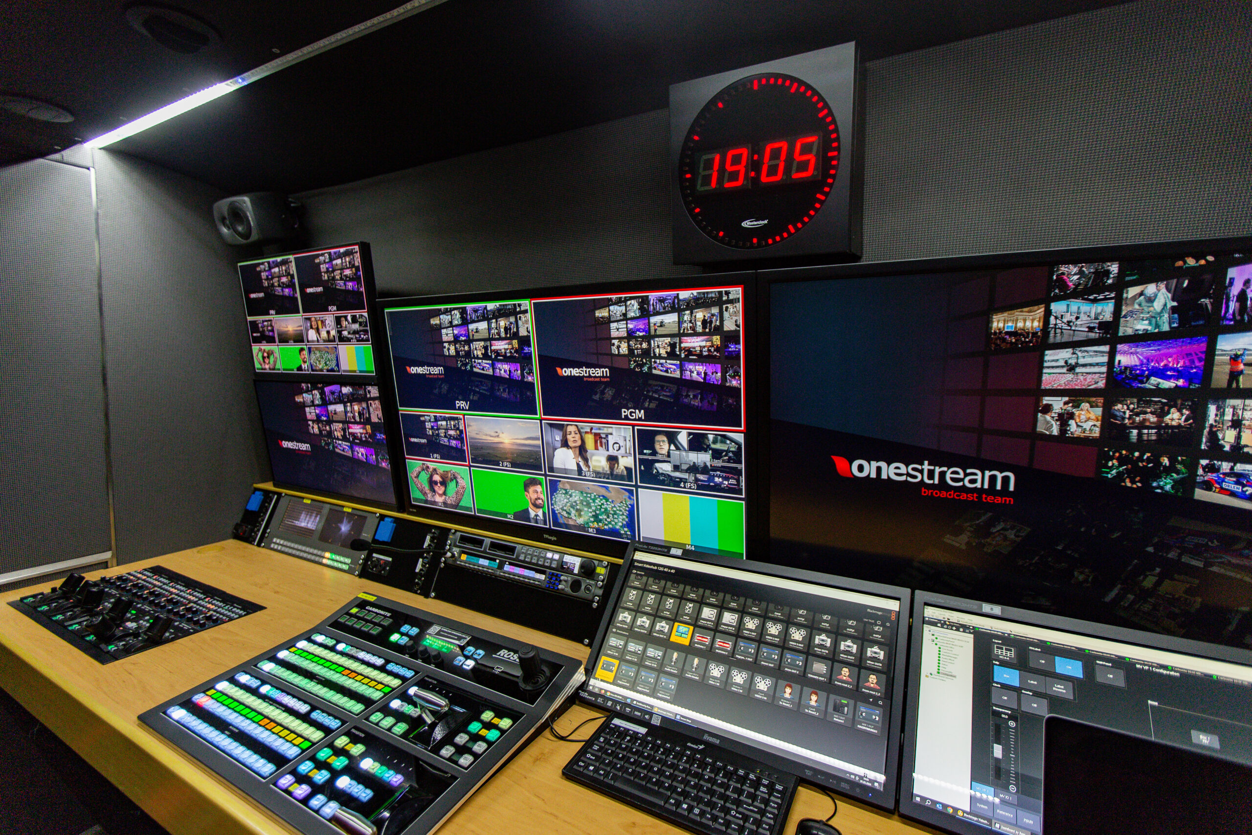 There are 6 workstations – vision mixer, audio engineer, shading area, graphics area and slow-motion area, providing a comfortable working environment for the team. We also have an EVS XT3 ChannelMax replay system, RTS Intercom System, and a LiveU LU600 device with LiveU LU4000 server. The OB VAN operates in FullHD and 4K/12G standards.
